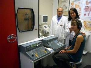 Esame audiometrico: l’esame audiometrico consente la valutazione della percezione uditiva. Viene eseguito all’interno di una speciale cabina insonorizzata e prevede l’utilizzo di un paio di cuffie auricolari a cui vengono inviati dei suoni a diverse tonalità. Il paziente dovrà dare un cenno di consesno tutte le volte che percepirà il suono: in questo modo il medico potrà determinare la soglia di minima udibilità del soggetto. Impedenzometria e timpanogramma: l’impedenzometria (o timpanometria) è un metodo di studio dell’orecchio medio che ne valuta le condizioni di motilità e la trasmissione del suono. Questo esame è indispensabile per valutare la funzione dell’orecchio medio in caso di patologie, come le otiti medie o per l’idoneità alla pratica di ossigenoterapia iperbarica e negli sports subacquei. L’esame si effettua posizionando una sonda cilindrica nel condotto uditivo del paziente. La sonda chiude ermeticamente il condotto uditivo, in modo da potervi creare una pressione: variando la pressione nel condotto è possibile misurare la cedevolezza (compliance) del sistema timpano ossiculare a diversi livelli pressori. I valori ottenuti vengono riportati su un grafico chiamato timpanogramma. Studio dei riflessi stapediali ispi e controlaterali: il riflesso stapediale è la contrazione bilaterale, involontaria, del muscolo stapedio (muscolo della staffa), dovuta ad eccessiva stimolazione dell’orecchio interno. Ha una funzione protettiva dell’orecchio interno nonchè di estensione del campo uditivo e di miglioramento della capacità discriminitiva del rumore, consentendo ad esempio di comprendere la parola anche in ambienti rumorosi. Lo studio dei riflessi acustici registra la diminuzione della rigidità del sistema timpano ossiculare in presenza di uno stimolo acustico ipsi e controlateralmente per contrazione del muscolo stapedio. Il riflesso stapediale è registrabile solo in presenza di membrana timpanica integra e di timpanogramma normale. Lo studio del riflesso stapediale ispi (suono inviato all’orecchio con sonda) e controlaterale (suono inviato all’orecchio opposto a quello con la sonda) consente di differenziare un deficit trasmissivo da un deficit neurosensoriale. Tone decay test: si esegue per verificare se esiste un danno uditivo retrococleare ovvero del nervo acustico che dall’organo dell’udito trasmette l’informazione all’area acustica del cervello. Otoscopia a fibre ottiche: l’otoscopia è l’esame dell’orecchio che viene effettuato per via endoscopica tramite uno strumento: l’otoscopio, che consente di visualizzare il condotto uditivo esterno e la membrana timpanica ed il video otoscopio digitale che consente inoltre la visualizzazione dell’immagine su monitor e la stampa dell’immagine stessa ed evidenzia eventuali cicatrici o perforazioni da esiti infiammatori o traumatici.